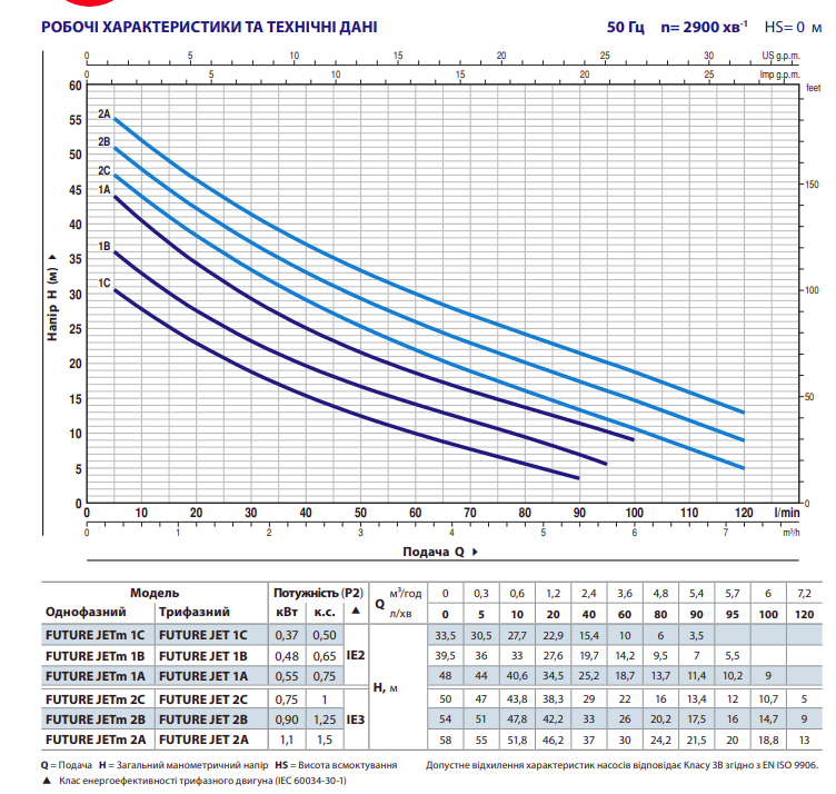 Характеристики Самомовсасывающий насос Pedrollo FUTURE JET 1C