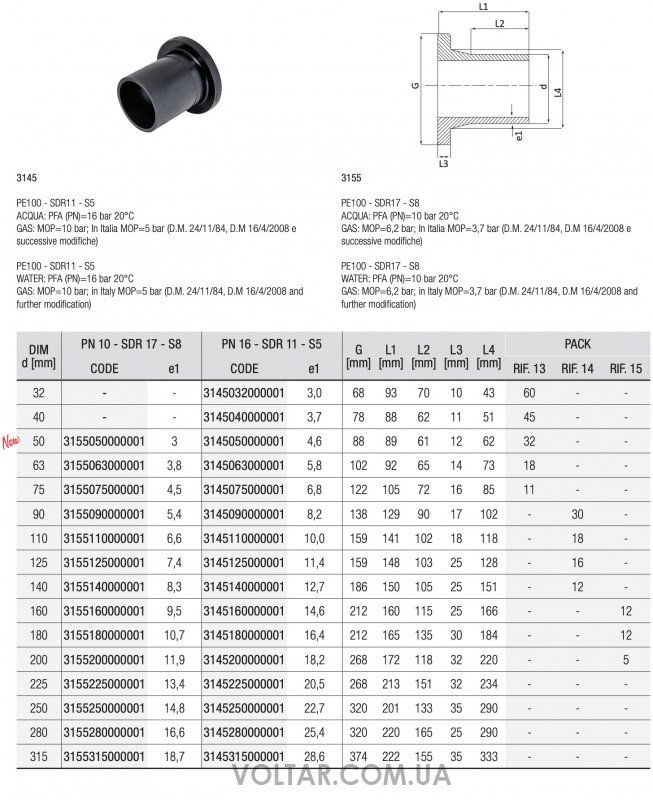 Характеристики Втулка под фланец UNIDELTA 3145 PN 16 (электросварка)